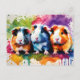 This postcard shows three cute guinea pigs with splashes of colour. Cute, popular pets for children and adults too! The postcard can be customized on the reverse (with or without a small picture, with or without text). Send a loving greeting or hang up the card as a wall decor.