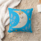Cute Half moon blue background Throw Pillow