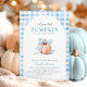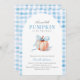 Celebrate your fall baby in the most charming way with this blue gingham baby shower invitation. Featuring a soft watercolor pumpkin tied with a pastel blue bow, this design perfectly blends rustic fall charm with modern elegance. Whether you're planning a cozy autumn gathering or a sweet seasonal celebration for a baby boy, this invitation sets the perfect tone. Personalize the details, send it to your guests, and get ready for an unforgettable shower filled with love, laughter, and a whole lot of pumpkin spice vibes!