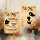 I'm excited to share a customizable cute halloween black cat wedding party invitation. The typography comes in black with different sizes and options. you might change the background to your preferations in the design tool. It has a typical spider, pumpkin and bat garland in black and orange. Around the corner is a sneaky black cat looking for a bat. You can customize it with an Intro, halloween Party, date, adress and RSVP. The backside of the invitation has the same garland and a black cute ghost and a cat with space in the middle for your monograms. This design comes with old beige retro charcoal paper which hits perfect the design. It makes it more spooky and old.