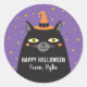 A cute black Halloween cat with a hat decorates this sticker. Personalize it for Halloween classroom treats, or for Halloween party favours. Designed for you by Blackberry Boulevard.