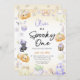 Celebrate with these fun and trendy "Spooky ONE" Halloween 1st birthday invitations. This modern 1st birthday invitation is featuring hand painted watercolor ghosts