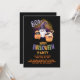 This customizable stylish Halloween party invitation features a smiling ghost with a purple witch hat, an orange pumpkin with a cat, and a festive cupcake topped with bats andsweets, all set against a deep black background. Bright orange and purple accents pop vividly against the dark backdrop, creating a perfect mix of spooky and playful. Finished with a decorative monogram at the bottom, this design is ideal for sending unique and cheerful Halloween party Invitations.