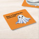 Cute Halloween Ghost Square Paper Coaster with wishes for a Spooktacular Halloween.