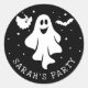 Cute Halloween Ghost With Heart And Bat Classic Round Sticker - easy to customize with your own text / name