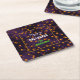 Delightful smiling jack o lantern pumpkins on a deep purple bokeh background, Happy Halloween greeting in white font and name in neon green decorate these cute paper coasters. Easily make text changes using the Template provided. Ideal for Halloween party or small October gathering. Set of 6 paper coasters are 4"x4", made of 50 pt. pulp board and printed in vibrant full colour. There are 9 other shapes available. See "About This Product" at side for more information.