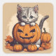 Cute Halloween Kitten and Jack-O'-Lantern Square Sticker