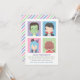 If the birthday boy or girl's birthday falls in the Halloween month or you just want to have a Halloween dressed up party for kids, you got to have this cute and colourful Halloween party invitation! It reinterprets the popular Halloween monsters in their cute kid versions instead of their spooky and eerie adult versions. They include green Monster, Vampire, little witch with black cat and werewolf. On the reverse is a slanted stripes pattern.