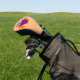 This awesome golf driver cover features a cute owl with its eyes shut as if it is sleeping and cute claws. Its body is purple and its wings, ears and claws and beak are orange. This cute owl is so adorable adults will love it just as much as kids.