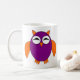 Cette tasse élégante présente une chouette mignonne avec les yeux fermés comme s'il dormait et des griffes mignonnes. Son corps est violet et ses ailes, oreilles, griffes et bec sont oranges. Cette chouette est tellement adorable que les adultes l'adoreront autant que les enfants.