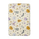 This cute Halloween pattern features a delightful mix of spooky and sweet illustrations scattered across a light beige background. The design includes playful Halloween elements such as a purple witch's hat adorned with stars, pumpkin-shaped candy, whimsical skulls and bones, and lollipops. Additional spooky touches include spiders hanging from webs, bats, tombstones, and potion bottles labelled "Magic." Small stars and polka dots fill the gaps, giving the design a cheerful and fun vibe. The soft colour palette, including purples, oranges, and yellows, adds to the charm, making this pattern perfect for a lighthearted Halloween celebration.