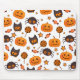 Super cute halloween pattern. In this illustration you can see pumpkins, spiders, owls, stars and candy. Colour scheme of this halloween design is orange, black and white.