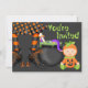 Cute Personalized Halloween 1st Birthday Invitation for Boys and Girls. Features a cute baby in a pumpkin costume with mom witch legs and a creepy cauldron. artwork©delightful-doodles.com *