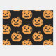 Cute Pumpkins Mixed Halloween Wrapping Paper Sheets include assorted designs with matching colours for your spook party. Two sheets have black background with pattern of orange jack o lanterns and one sheet has black and orange stripes.