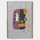 Cute retro style RV camper with Halloween decorations and customizable "Happy Halloween" text on light grey background