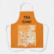 Halloween tea time kitchen apron with bat and skeleton drinking red tea and green tea promoting their bones and heart...printed in vibrant orange colours with a dash of green, red, and black script. Great for your own private function or gifting to all culinary friends.