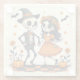 Cute Halloween Skeleton Couple in Orange Glass Coaster