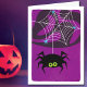 Send an adorable Halloween card in the mail like this black spider with pointy legs hanging from a web. This illustration is a digital image of hand-painted paper. Inside: Blank