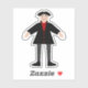 This awesome shaped sticker sheet features a digital art image of a creepy but cute Halloween Vampire. The vampire has spiky black hair, a red shirt and black jacket with blood red heart shaped buttons on it. He has a creepy smile and long white fangs. He also has yellow fingernails, purple socks and black shoes with gold buckles on them. His arms are open welcoming you for an evil embrace.