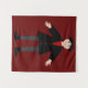 This awesome tapestry features a digital art image of a creepy but cute Halloween Vampire. The vampire has spiky black hair, a red shirt and black jacket with blood red heart shaped buttons on it. He has a creepy smile and long white fangs. He also has yellow fingernails, purple socks and black shoes with gold buckles on them. His arms are open welcoming you for an evil embrace.