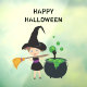 BOO! Trick or Treat! Don't get scared now. Cute Halloween witch casting spells over the green slimy cauldron. Modern contemporary art design for celebrating Halloween. The perfect modern contemporary Halloween art design ideal for a Halloween present, birthday gift, Halloween party decor, nursery decor, kids room art, home decor and Halloween apparel.