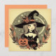 Cute Halloween Witch with Black Cat and Pumpkin Card