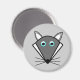 This magnet features a kawaii style cartoon of a cute grey Halloween Wolf with pointed ears, bright blue eyes and black nose surrounded by whiskers. This cute wolf is perfect for Halloween or for animal lovers.