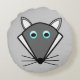 This awesome round pillow features a kawaii style cartoon of a cute grey Halloween Wolf with pointed ears, bright blue eyes and black nose surrounded by whiskers. This cute wolf is perfect for Halloween or for animal lovers.