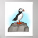 Digital art hand drawn Puffin standing on a rock with blue background.