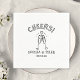 Celebrate your special day with these chic, personalized wedding napkins featuring a modern 'CHEERS!' design. With your names and wedding date in simple black and white, these napkins are perfect for adding a touch of timeless elegance to your wedding reception or rehearsal dinner. The stylish clinking champagne glasses and heart detail make them a memorable keepsake for your guests. Whether planning an intimate gathering or a grand event, these napkins effortlessly blend sophistication with a fun, celebratory vibe. Ideal for couples who value both style and personalization.