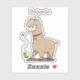 This cute alpaca is making friends with a pink butterfly. A happy and adorable cartoon for child.