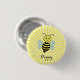 Cute happy bee and calligraphy on yellow sun rays 1 inch round button