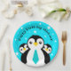 Cute Happy Birthday Boy Penguins Blue Neckties Paper Plate