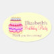 Cute Happy Birthday Cake Personalized Oval Sticker