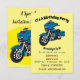 Cute happy blue motorcycle cartoon invitation
