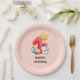 Paper plates with an adorable image featuring a smiling cow, with a gold star balloon and some cake and a present.