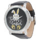 Cute Happy Easter Bunny with Yellow Paw Prints Watch