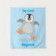 Send a happy hello from Antarctica from a warm fluffy penguin! This cute emperor penguin chick is jumping for joy. Drawn in fun cartoon style.