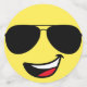 Design features a cute, yellow happy face wearing cool, fun black aviator sunglasses, smiling ear to ear and spreading good vibes.