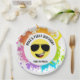 Turn every birthday bite into a celebration with our Yellow Happy Face Aviator Plate. Each plate features a big, cheerful yellow happy face sporting a pair of cool black aviator glasses, grinning ear to ear and spreading good vibes to everyone at the table. The plate’s border, splashed with bursts of colourful paint and layered with sparkling gold glitter, creating a festive, artsy look that’s sure to brighten up any party. Customize it with a name and age.