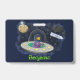 Cute happy fish ufo space cartoon illustration badge
