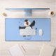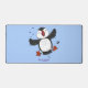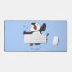 Cute happy flying puffin blue cartoon illustration desk mat