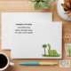 Cute happy green brontosaurus dinosaur cartoon envelope