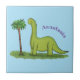 Cute happy green brontosaurus dinosaur cartoon tile