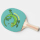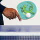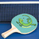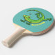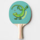 Cute happy green gecko greetings with bug cartoon ping pong paddle