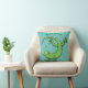 Cute happy green gecko greetings with bug cartoon throw pillow