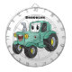 This happy green tractor is ready for plowing time! Drawn in fun cartoon style.