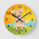 Cute happy jersey cow and flower sunrise cartoon round clock