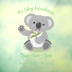 This cute marsupial koala is enjoying a leafy snack and waving hello. Drawn in cartoon illustration style.