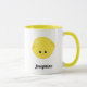 Cute and stylish mug featuring an adorable kawaii smiling lemon and an editable text placeholder for your name or custom text in a modern, bold script. Easily personalize this design to match your style by clicking "Customize" to go to the design tool and adding your own custom text or details. This sweet design is a perfect gift for foodies and fruit lovers.